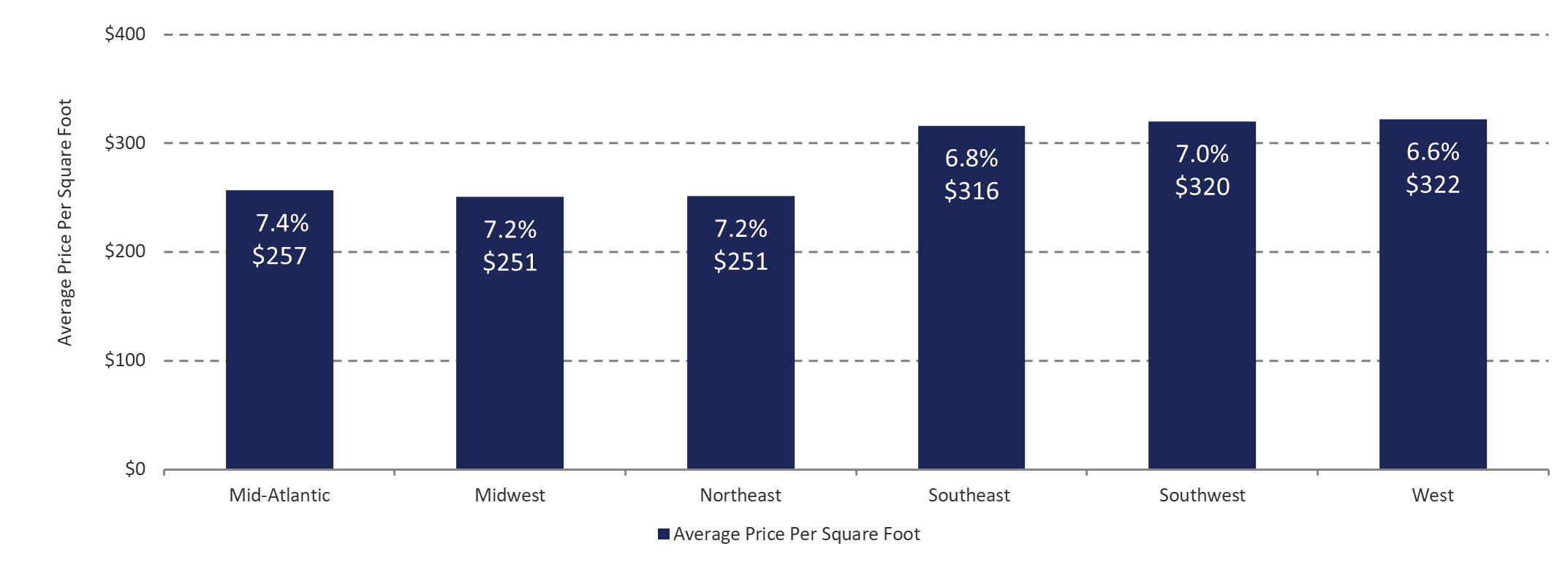 Despite a lackluster quarter with respect to transaction volume nationwide, the Midwest benefited from favorable demographic trends as the region outperformed its most recent quarter boasting $407 million in transaction volume—their best performing quarter since 2022. Additionally, the spread in cap rates among all regions tightened from 170-basis points last quarter to just 80-basis points with the West Region realizing the lowest quarterly average cap rate of 6.6-percent and the Mid-Atlantic experiencing the highest at 7.4-percent.