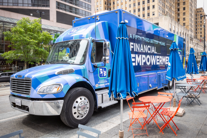 The Fifth Third Financial Empowerment Mobile, commonly known as the eBus, brings financial access, social services, and education directly into communities across the Bank’s 12-state footprint, especially in underserved areas.